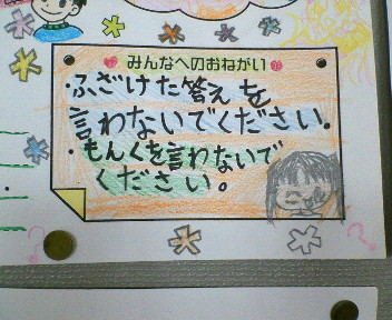 2006年8月1日 / 最終更新日時 : 2017年3月29日 tomo1gt Journal Never lose 忙しいBAND活動の合間を縫って前●市にある某小学校へアスベスト撤去作業終了後の片付け等、雑務をこなしに行きました。 ある教室を覗くとその掲示板にはこんな事が書かれていました。 哀愁漂う文面となぜか笑顔の少女の絵が混在しています。 大人になるとこういうセンスが乏しくなってくるのが切ないですね。